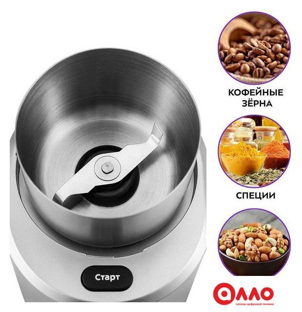 200 Вт, контейнер для зерен на 70 г, регулировка степени помола