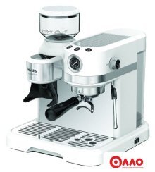 рожковая бойлерная кофеварка, 1500 Вт, корпус металл/пластик, капучинатор ручной, используемый кофе: молотый/зерновой, цвет белый/серебристый