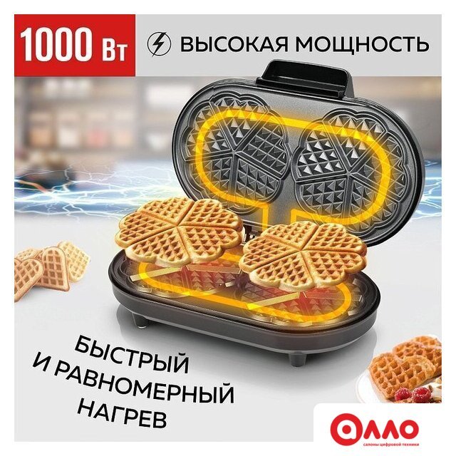 вафельница, 1000 Вт, регулировка температуры, венские (бельгийские) вафли
