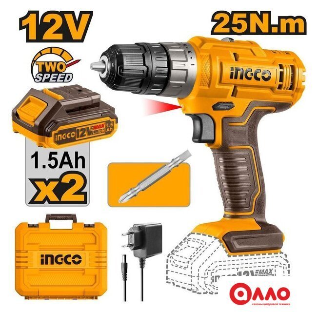 Дрель-шуруповерт Ingco CDLI1228 (с 2-мя АКБ, кейс)